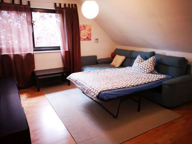 Die Ferienwohnung ist eine komplett separate Wohneinheit zu der Sie allein Zugang haben. Der Vorgarten darf sehr gerne mitgenutzt werden. Hier stehen eine Bank, sowie für Kinder eine Schaukel und andere Spielgeräte.
